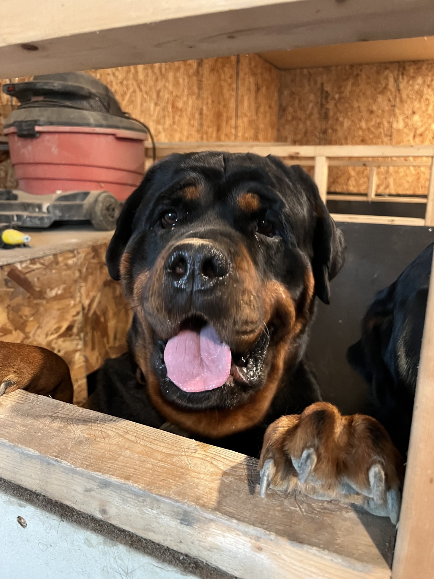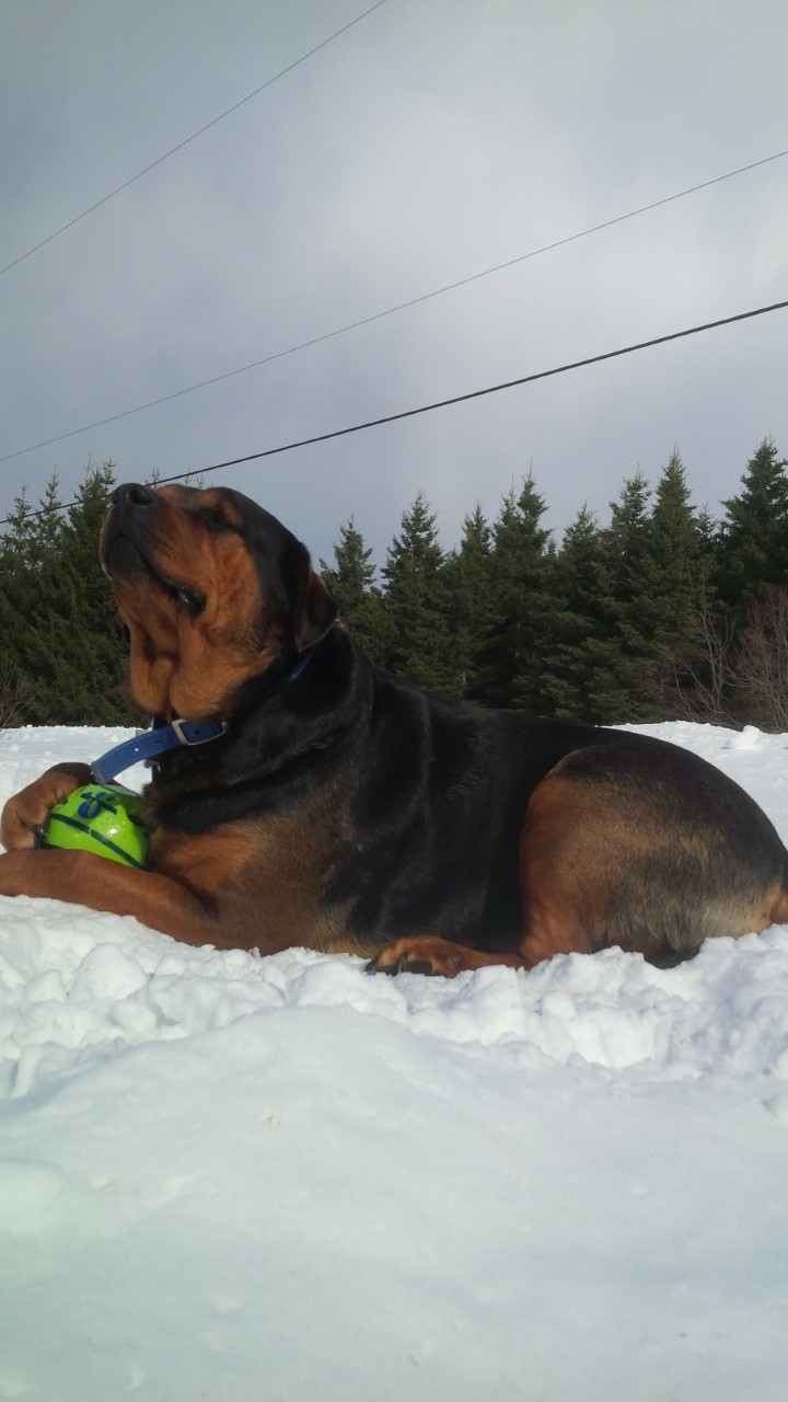 Nayka est une femelle Rottweiler issue de sa mère Jolly, une chienne reconnue pour son intelligence exceptionnelle, son équilibre et son instinct maternel très développé. Nayka porte clairement cette génétique solide, qui se reflète déjà dans son comportement et son tempérament.